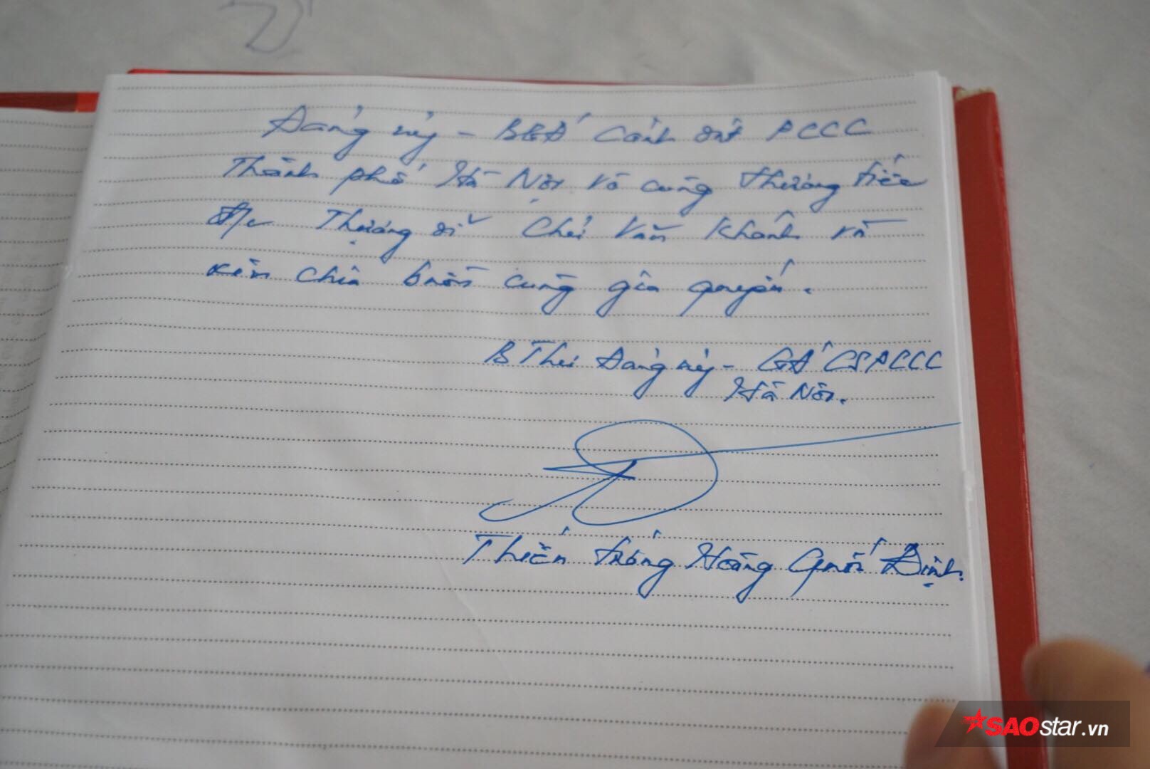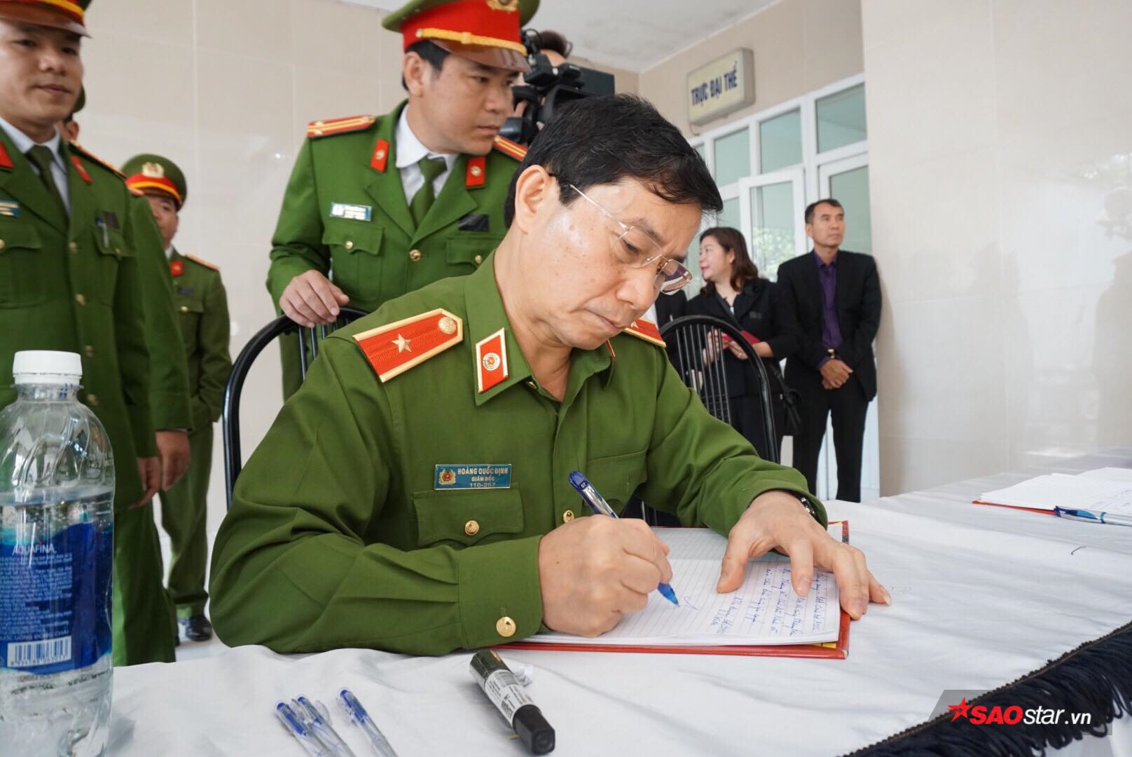 Thiếu tướng Hoàng Quốc Định, Giám đốc cảnh sát PCCC TP Hà nội đến phúng viếng chia buồn và viết sổ tang.