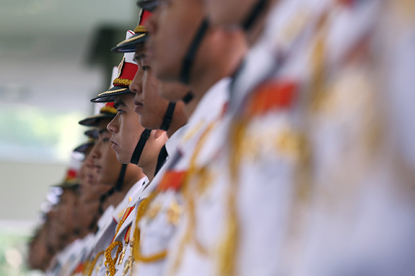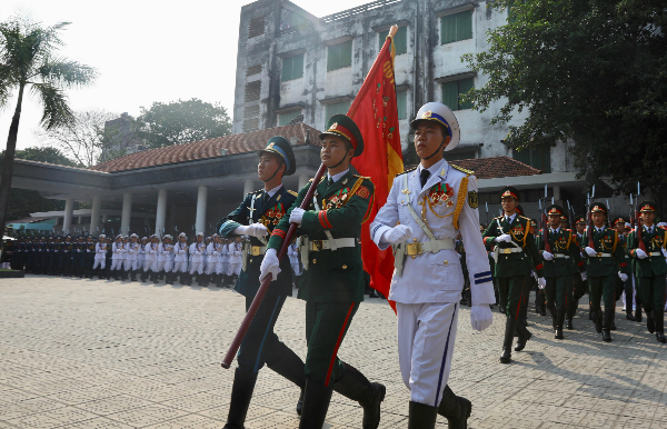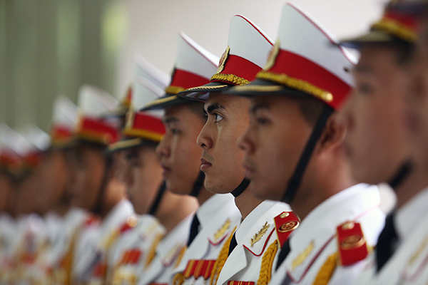 Đội nghi lễ vào vị trí trước giờ truy điệu.
