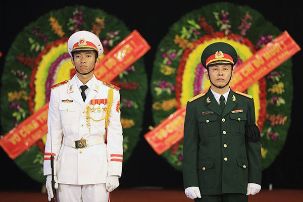 Tang lễ ông tổ chức theo nghi thức quốc tang trong hai ngày, thứ bảy và chủ nhật. Lễ viếng ông đã diễn ra cả ngày hôm qua tại Nhà tang lễ quốc gia Trần Thánh Tông (Hà Nội) và Hội trường Thống Nhất (TP HCM). Hàng trăm đoàn đại biểu, lãnh đạo Trung ương, các bộ ngành, lão thành cách mạng và đại sứ quán các nước đã dâng vòng hoa tỏ lòng thành kính.
