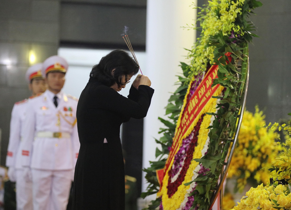 Quyền Chủ tịch nước Đặng Thị Ngọc Thịnh thắp hương viếng. Ảnh: Ngọc Thành