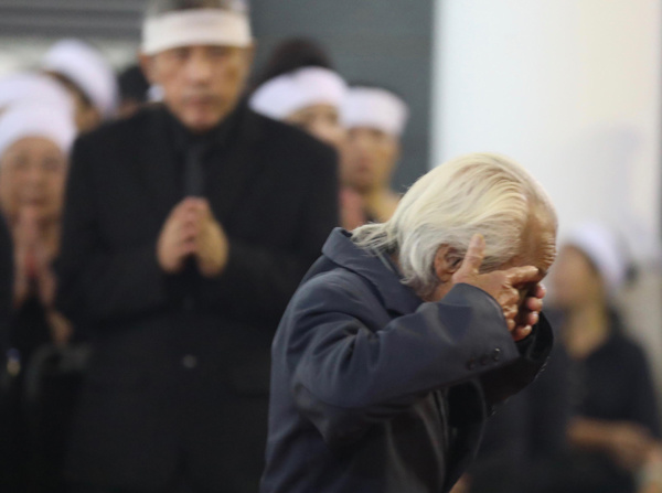 Ông Nguyễn Xuân Hùng không giấu được xúc động khi viếng cố Tổng bí thư Đỗ Mười. Ảnh: Ngọc Thành