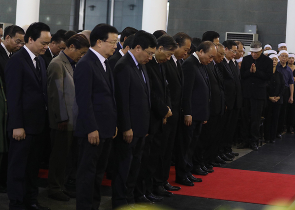 Thủ tướng Nguyễn Xuân Phúc dẫn đầu đoàn Chính phủ vào viếng cố Tổng bí thư Đỗ Mười. Ảnh: Nhật Bắc/VGP