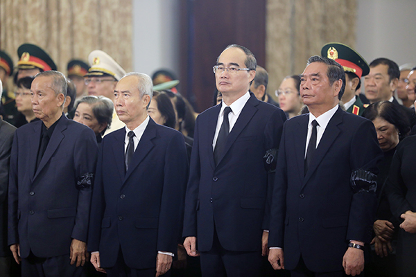 Đoàn đại biểu Thành ủy, HĐND, UBND, UB Mặt trận Tổ quốc Việt Nam TP HCM và các lãnh đạo Đảng, Nhà nước đã nghỉ hưu tại thành phố, nguyên lãnh đạo thành phố là đoàn vào viếng đầu tiên.