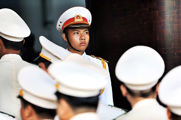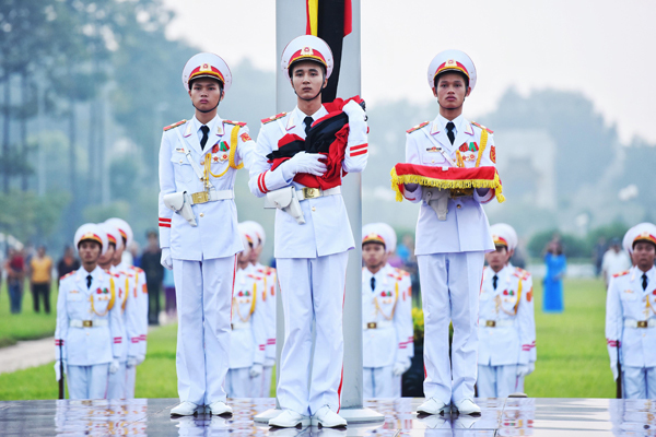 Nghi lễ treo cờ rủ ở quảng trường Ba Đình. Ảnh: Giang Huy