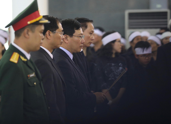 Phó thủ tướng, Bộ trưởng Ngoại giao Phạm Bình Minh dẫn đầu đoàn Bộ Ngoại giao viếng cố Tổng bí thư. Ảnh: Ngọc Thành