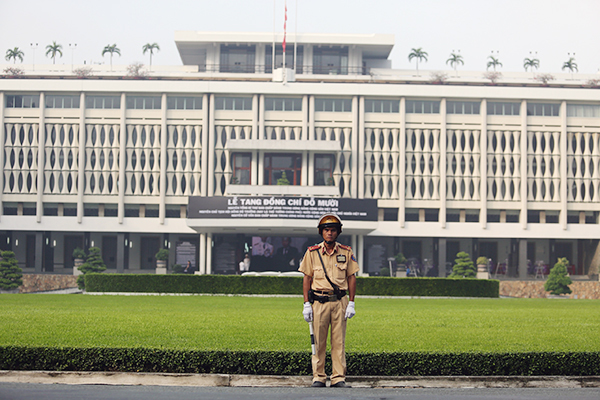 An ninh thắt chặt xung quanh Dinh Thống Nhất. Ảnh: Hữu Khoa.