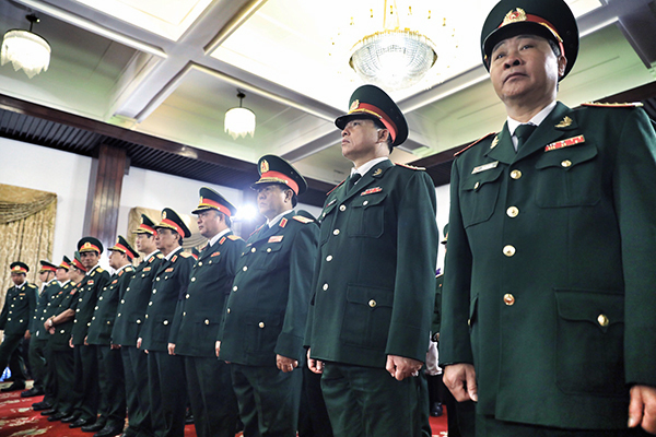 Đoàn Quân ủy Trung ương, Bộ Quốc phòng viếng cố Tổng bí thư Đỗ Mười. Ảnh: Ngọc Thành