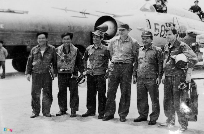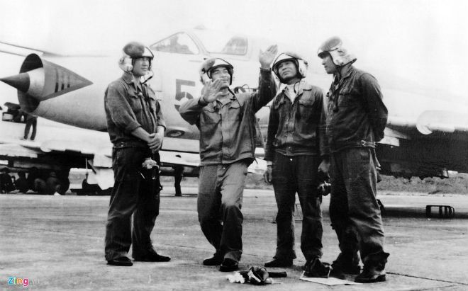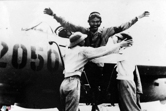 - Ngày 24/4/1967, biên đội MIG-17 cất cánh từ Kiến An gồm Võ Văn Mẫn, Nguyễn Bá Địch, Nguyễn Văn Bảy, Nguyễn Thế Hôn bắn rơi 2 chiếc F4 của Mỹ. Ảnh: Phi công Nguyễn Văn Bảy sau chiến thắng trở về.