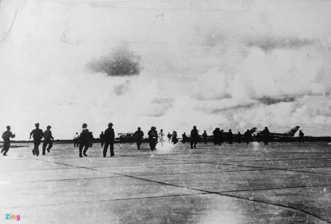 - Thủ trưởng Bộ tư lệnh quân chủng, Thủ trưởng Sư đoàn 372 với chuyên gia Liên Xô và chỉ huy bay, cán bộ kỹ thuật trước giờ máy bay Su-22M bay ra Trường Sa.