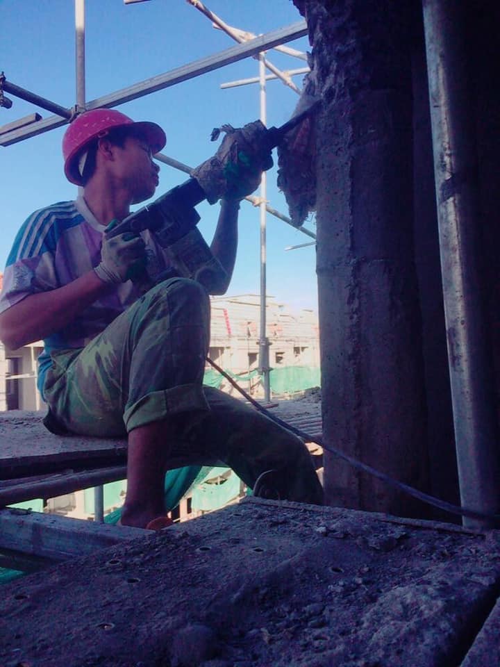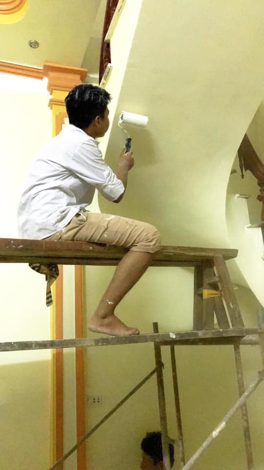 Hình ảnh S. đang sơn lại nhà khi đi làm thuê thời điểm chưa đi học.