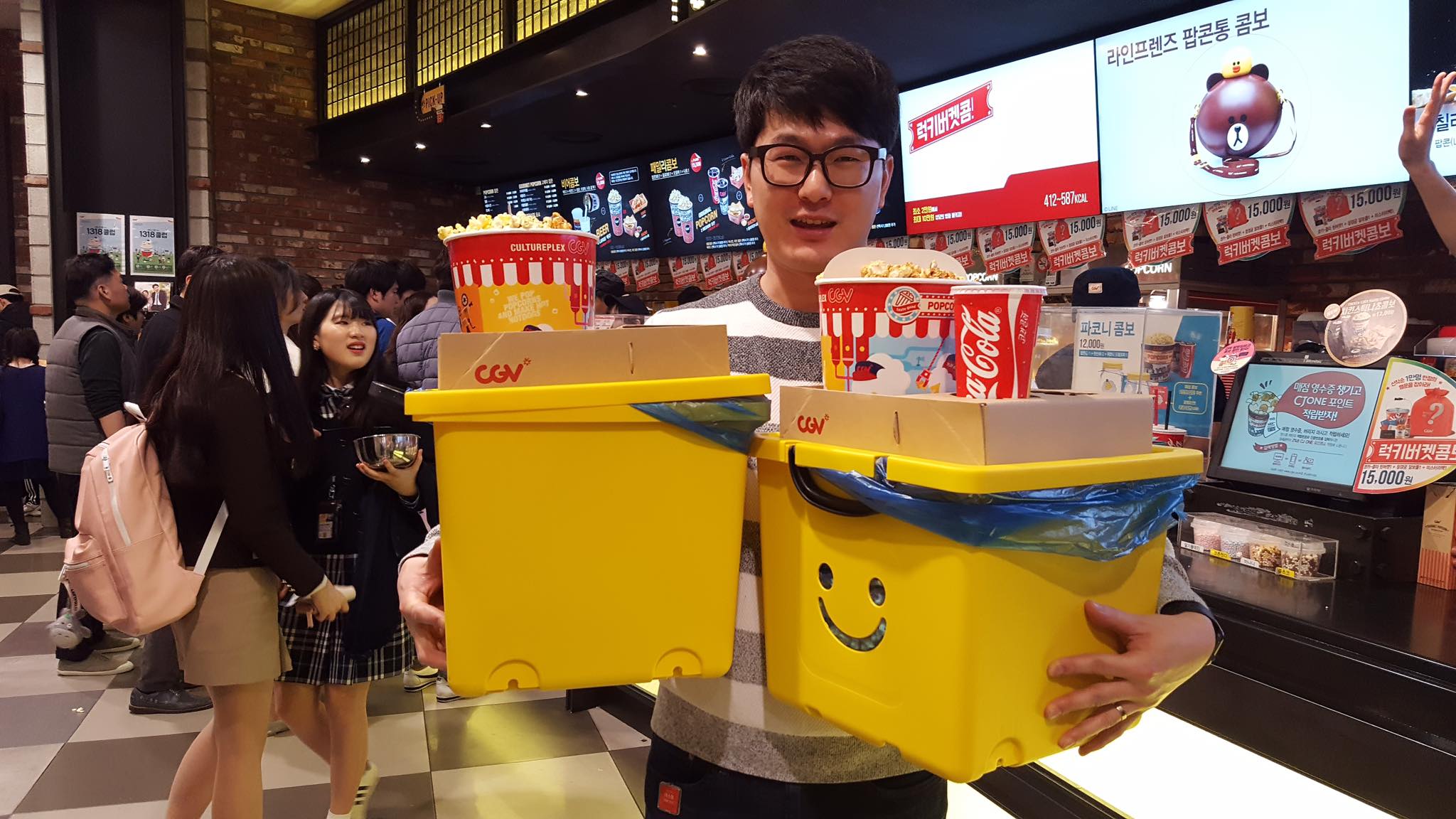 Hôm qua, một rạp chiếu phim ở Hàn Quốc tổ chức chương trình khuyến mại miễn phí bỏng ngô. Chương trình khuyến mãi này hấp dẫn đến nỗi khiến những vị khách đến rạp phải lỉnh kỉnh xách theo đồ để đựng được “càng nhiều bỏng càng tốt”.