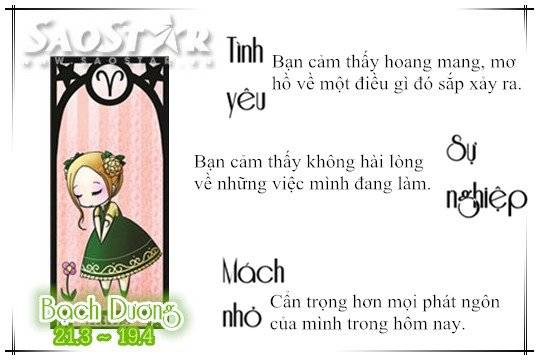 Thứ Tư 30/9: Linh tính mách bảo Bạch Dương chuyện không lành 29/09/2015 - 15:00 (GMT+7) Có những cảm giác rất khó đặt tên. Chỉ biết rằng cảm giác hoang mang, bất an về một điều gì đó rất rõ trong bạn lúc này... Chia sẻ Bài viết #Hashtag #SỰ NGHIỆP #CUNG HOÀNG ĐẠO #TÌNH YÊU #HOROSCOPE #12 CHÒM SAO