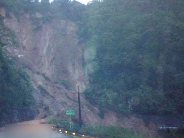 Khu vực núi lở trên đèo Tà Lương khiến chiếc xe khách chở 21 người bị mắc kẹt nhiều giờ