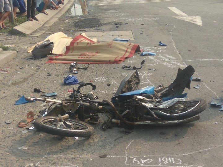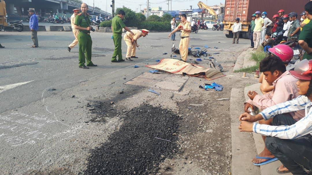 Vụ va chạm làm người phụ nữ điều khiển xe máy ngã ra đường, bị bánh xe container cán qua người tử vong.