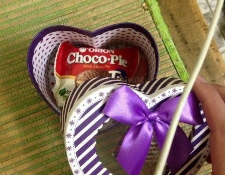 Ảnh chụp mỳ tôm hình trái tim, có thắt nơ đỏ hiện được nhiều bạn trẻ lan toả. Dân mạng cho rằng chàng trai nào tặng bạn gái món quà ngộ nghĩnh này hẳn rất đáng yêu. Ảnh: Rong Rêu.