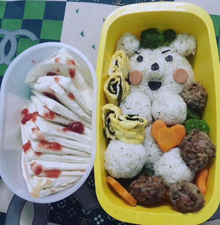 Hộp cơm trưa đáng yêu, cùng những chiếc bánh mỳ hình trái tim là món quà ý nghĩa do một chàng trai tự tay làm cho nửa còn lại của mình. Ảnh: Annie Hằng.