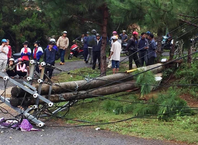 Lốc xoáy quật ngã trụ điện đè mẹ con cô giáo Phụng tử vong. Ảnh: M.Nhat.