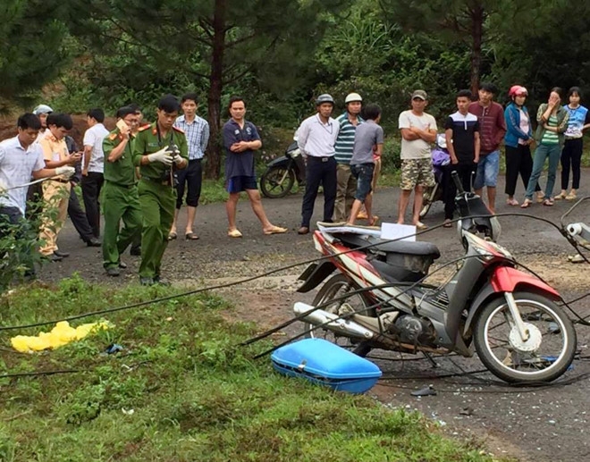 Theo ông Thắng, chiều 5/5, cô giáo Trần Thị Phụng (38 tuổi), giáo viên Trường phổ thông dân tộc bán trú tiểu học Măng Cành, chạy xe máy chở con trai và con người hàng xóm đi học thêm tiếng Anh.