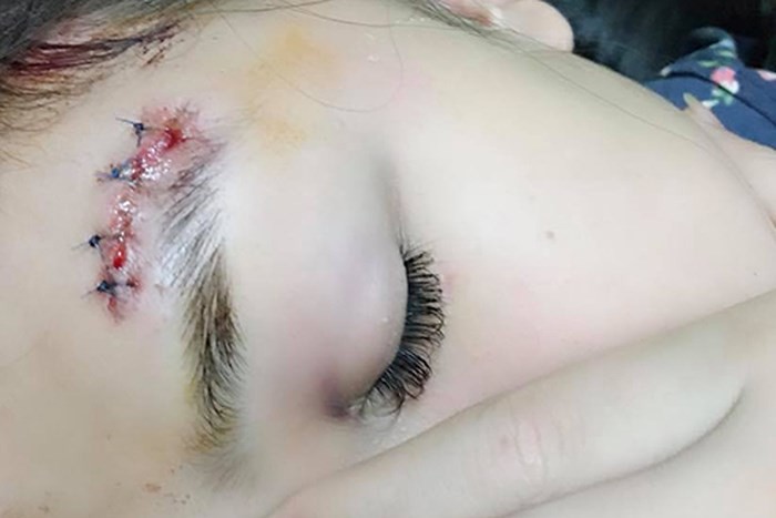 Ngay sau đó, chị Q.A được đưa đi cấp cứu tại bệnh viện, và sau gần nửa ngày, nạn nhân này vẫn cảm thấy choáng, bị nôn, với vết thương trên trán (phía trên lông mày trái) được khâu một số mũi.