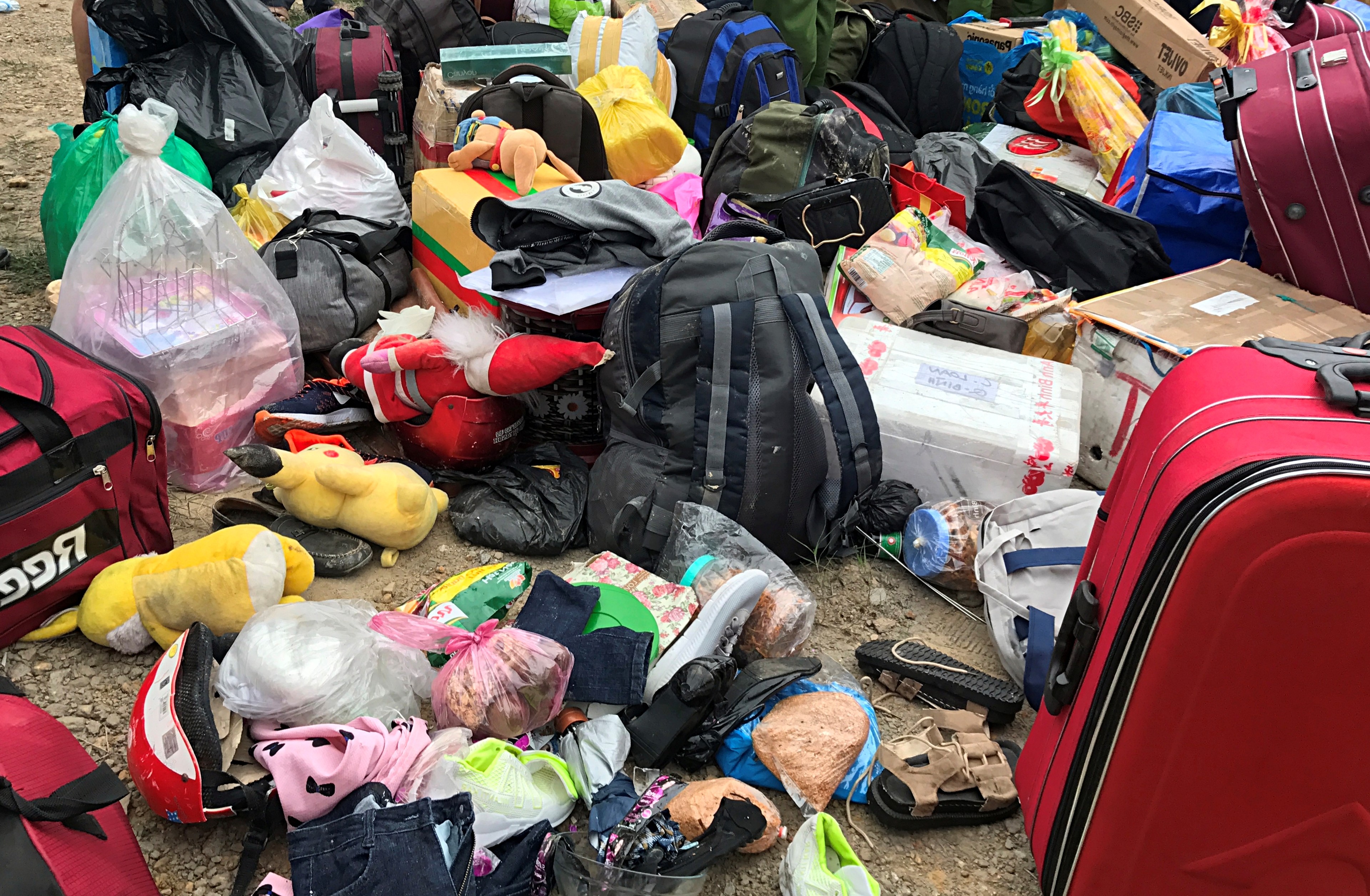 Hành lý cùng quà mang về quê biếu Tết của công nhân văng tung tóe khắp nơi.