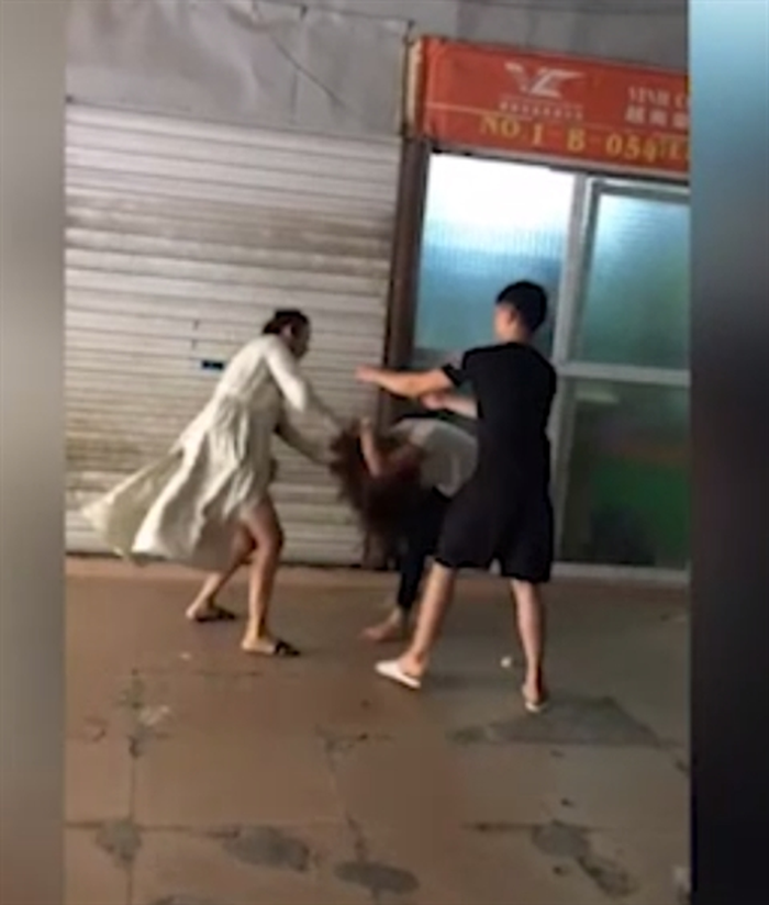 Hình ảnh Linh đánh đập dã man chị K. tại chợ.