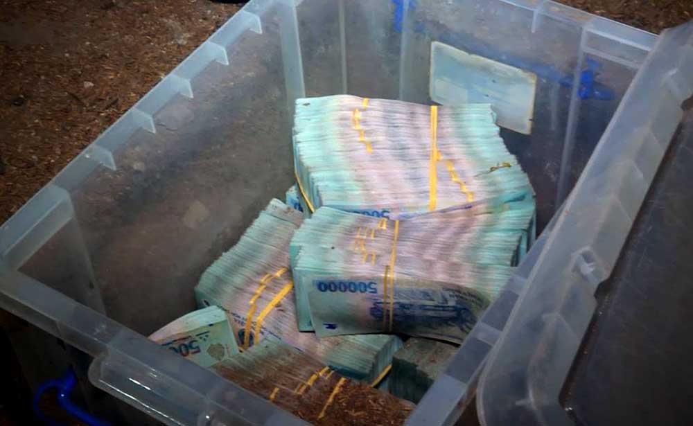 Đây là số tiền bọn chúng chờ khi tình hình yên ắng sẽ đào lên chia nhau. Trước đó, bọn chúng đã lấy 800 triệu đồng để đưa cho vợ Hùng trả nợ, mua heo, cho một số người khác và tiêu xài cá nhân.
