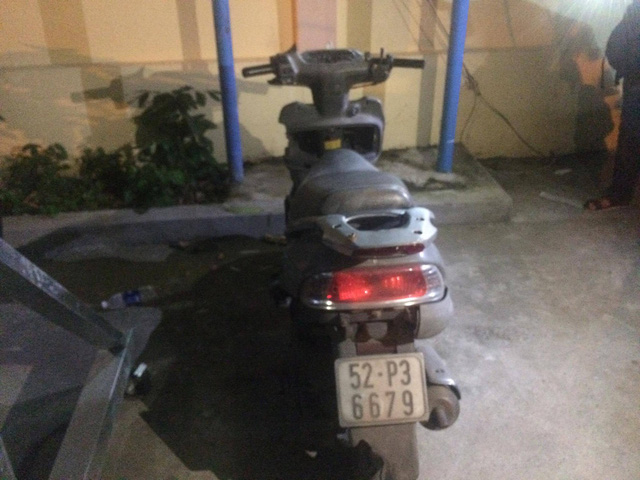 Chiếc xe đối tượng Long điều khiển khi chém “rụng” hàng loạt kính hậu ô tô giữa phố Sài Gòn. Ảnh Công an cung cấp.
