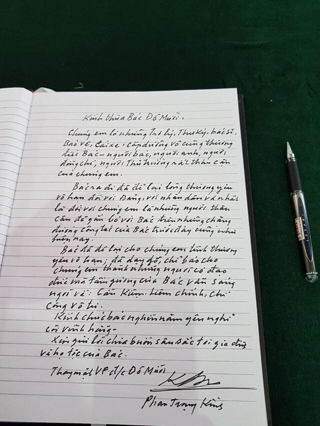 Dòng sổ tang của ông Phan Trọng Kính, người trợ lý lâu năm của cố Tổng Bí thư.