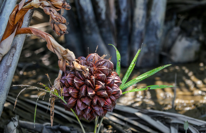 “Ở đây nhiều người thường đi bằng ghe vào các con kênh rạch sâu bên trong. Tôi chủ yếu đi bộ nên thường đợi gần trưa, nước rút mới lội hái đến chiều về. Công cụ hái dừa chỉ cần con dao có lưỡi sắc là đủ”, ông Hưng nói.