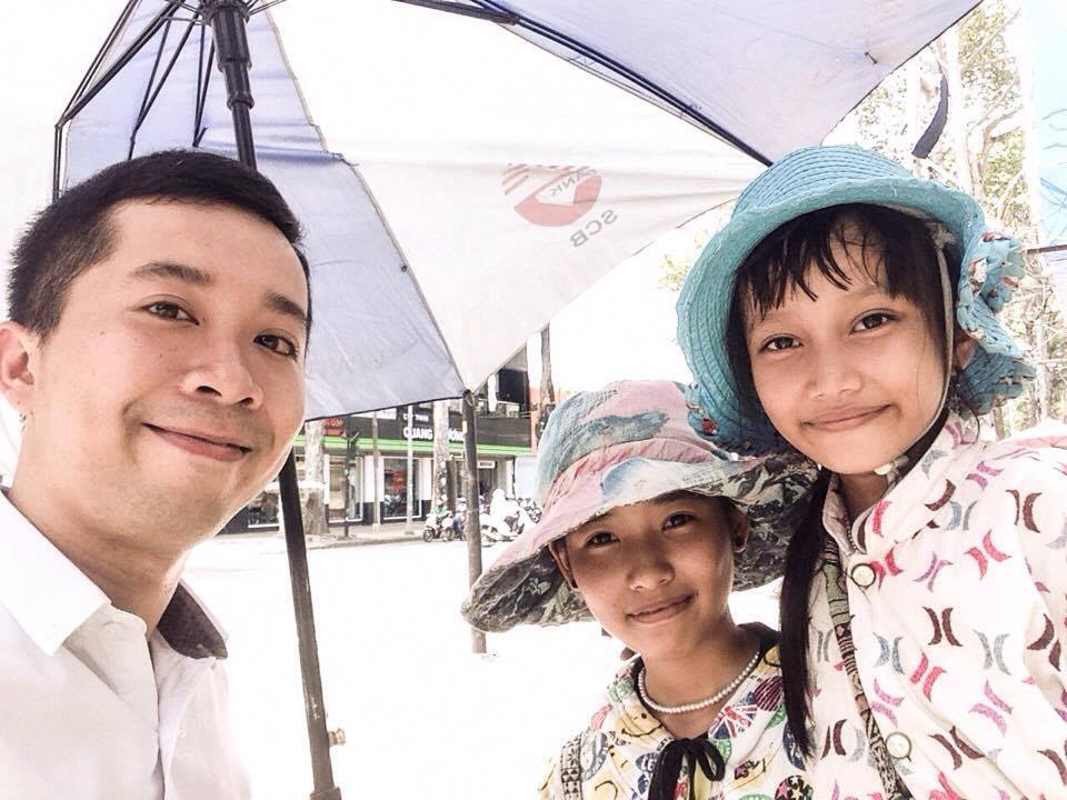 Anh Hà Tú và hai chị em cô bé học trò bán vé số đáng yêu. Ảnh: FB Le Ha Tu