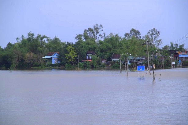 Nhiều tuyến đường giao thông tại huyện Tuy Phước ngập trong nước lũ.
