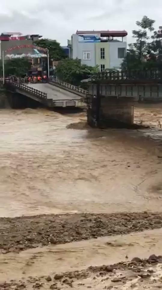 Hình ảnh cầu Thia bị lũ cuốn trôi khiến 1 phóng viên và 3 người dân mất tích. Ảnh facebook