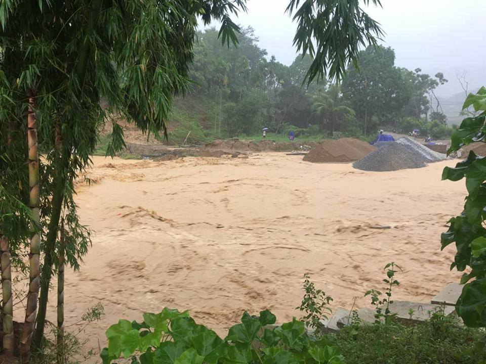 Nước sông chảy qua địa bàn huyện Lang Chánh chảy cuồn cuộn sau mưa lớn.