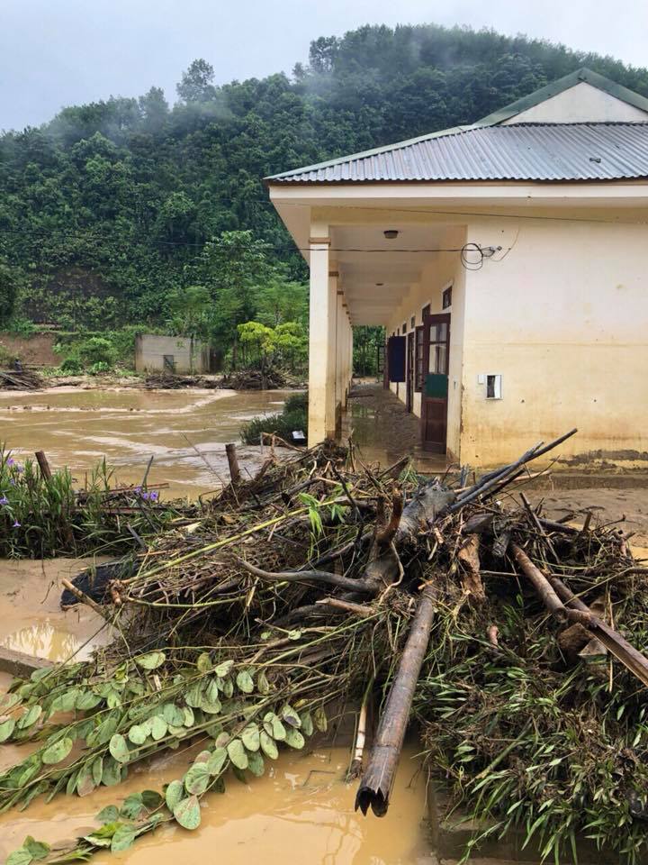 Trường học tan hoang sau lũ quét.