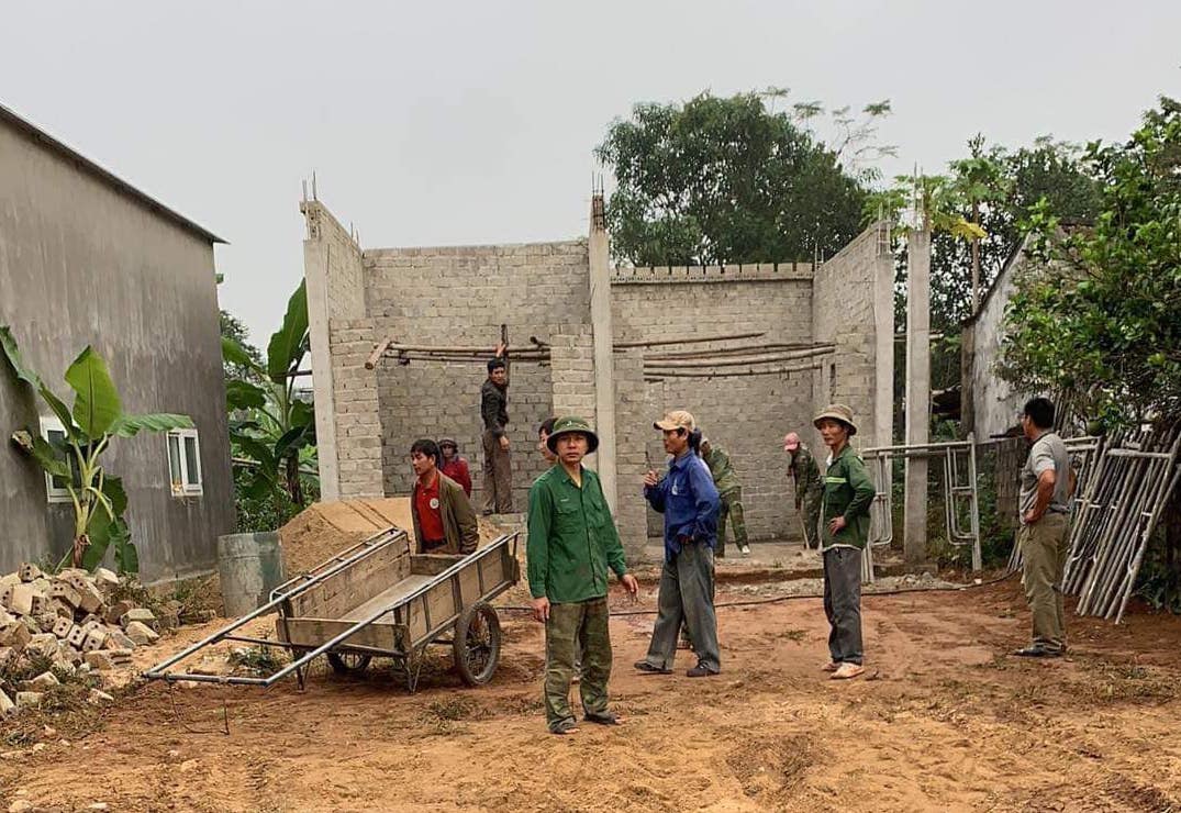 Người dân giúp đỡ gia đình dựng lại nhà