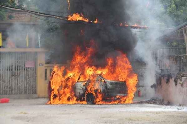 Người dân xung quanh khu vực thông tin với VOV, vào thời điểm trên, ô tô hiệu Ford Focus đang lùi thì bất cẩn di chuyển vào đống rác đang cháy. Ngay lập tức, ngọn lửa đã bén lên khiến chiếc xe bốc cháy dữ dội.