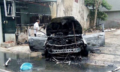 Chiếc xe trơ khung sau đám cháy. Ảnh: Infonet.