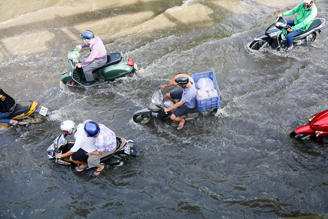 Do ảnh hưởng của cơn mưa lúc rạng sáng nên sáng nay, nhiều tuyến đường ở TP HCM vẫn còn ngập sâu