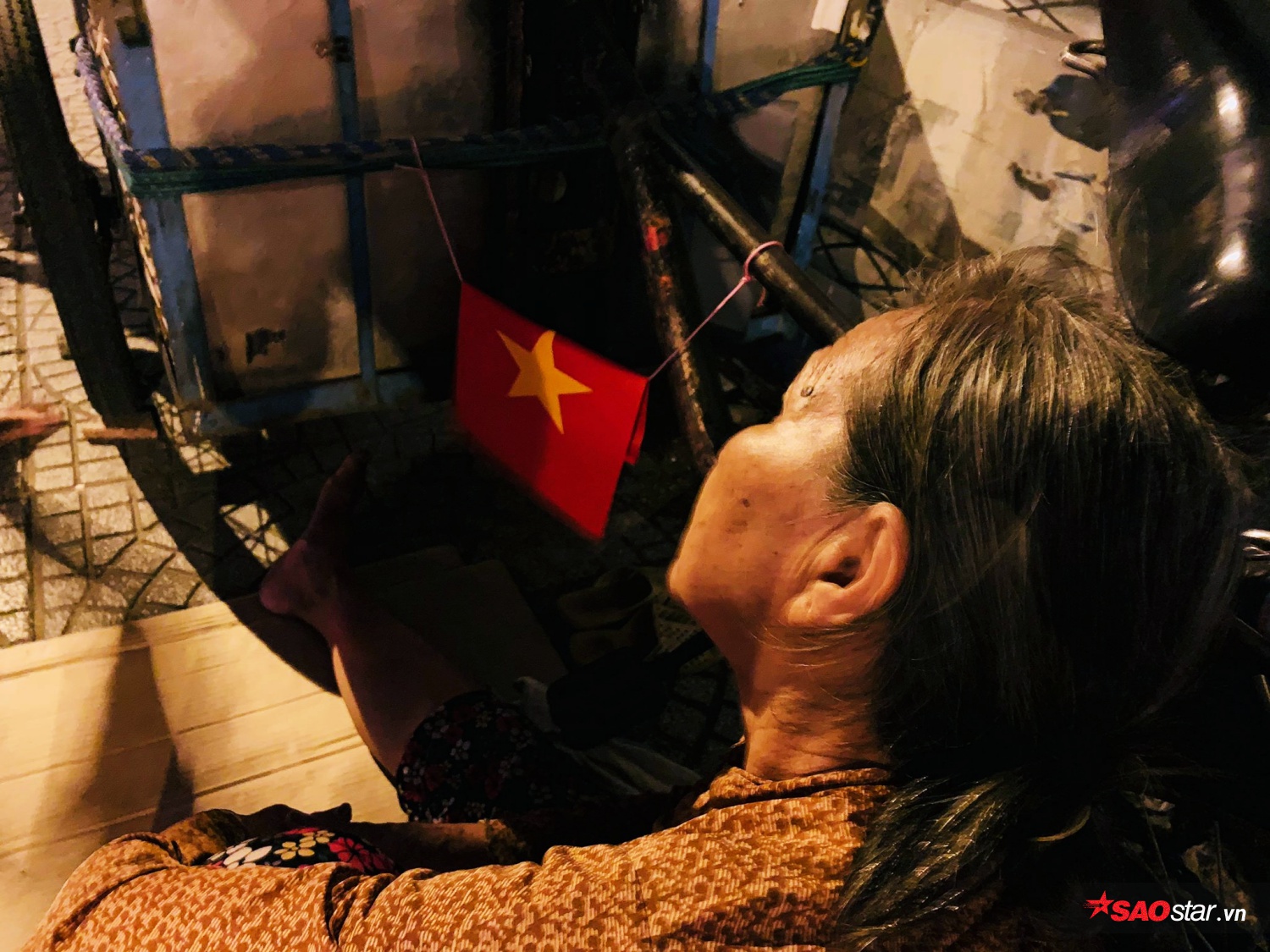 Trong khí đứa trẻ vẫn còn đang chơi đùa cùng chiếc cờ đỏ, bà nó đã không còn đủ sức gượng dậy, tựa đầu vào chiếc xe ve chai để ngủ thiếp đi. Bà cụ già và đứa cháu nhỏ bỏ mặc cho tiếng ồn ào không ngớt bởi gánh nhọc nhằn mưu sinh. Khung cảnh đối lập ấy khiến ai nấy chạnh lòng.
