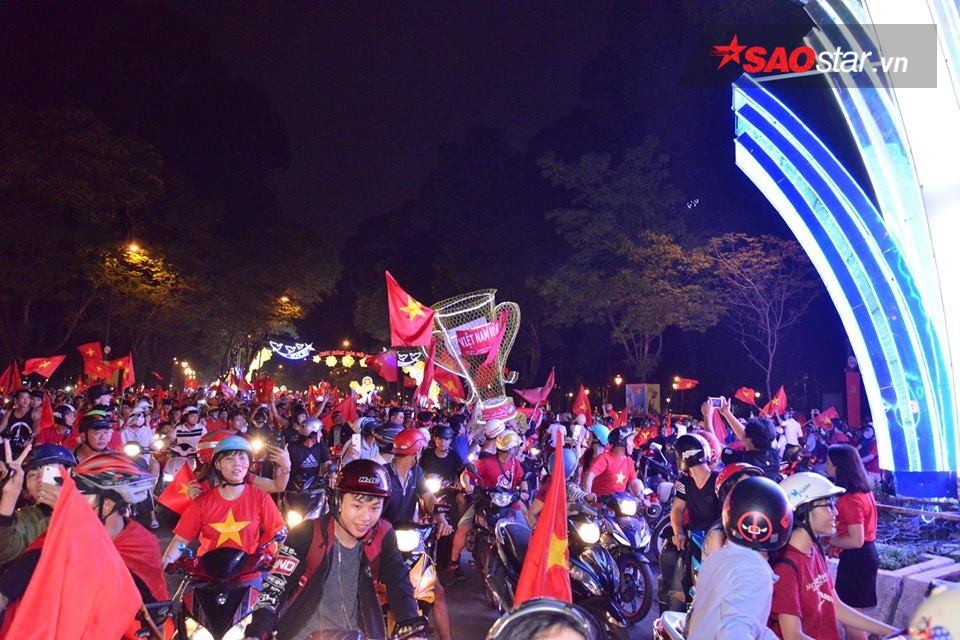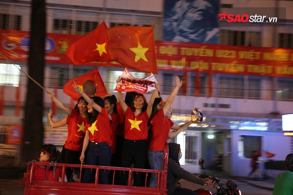 Càng về khuya, dòng người đổ ra đường càng đông. Các tuyến đường quanh phố đi bộ Nguyễn Huệ, nhà văn hóa Thanh Niên đều đông nghịt người. Dù không giành ngôi vô địch nhưng CĐV vẫn vác theo những chiếc cúp tự chế, hô to tên Việt Nam. Chắc chắn trong lòng họ, kể từ khi chúng ta vượt qua đối thủ Qatar thì U23 đã xứng danh là nhà đương kim vô địch.