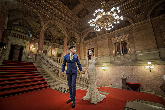 Cặp đôi đã có một bộ ảnh cưới cực lộng lẫy tại các thành phố nổi tiếng nhất châu Âu như Budapest, Paris, Vienne và Hallstat. Cùng ngắm những hình ảnh đẹp trong bộ ảnh của Wan và Andy: