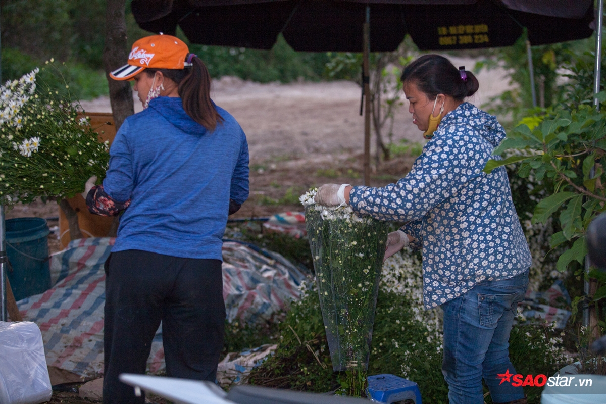 Người dân thường cắt hoa vào buổi chiều để đêm đến đem bán ở chợ hoa Quảng An.