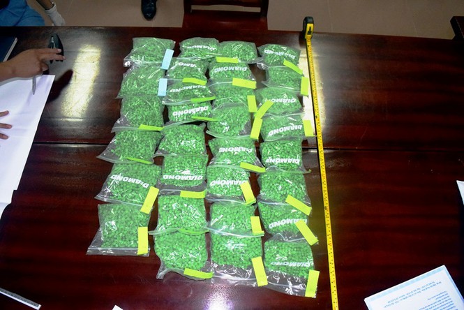 Hai người này bị cảnh sát bắt giữ hôm 20/9 khi đi tàu hỏa, mang theo valy chứa 30.000 viên ma túy tổng hợp.