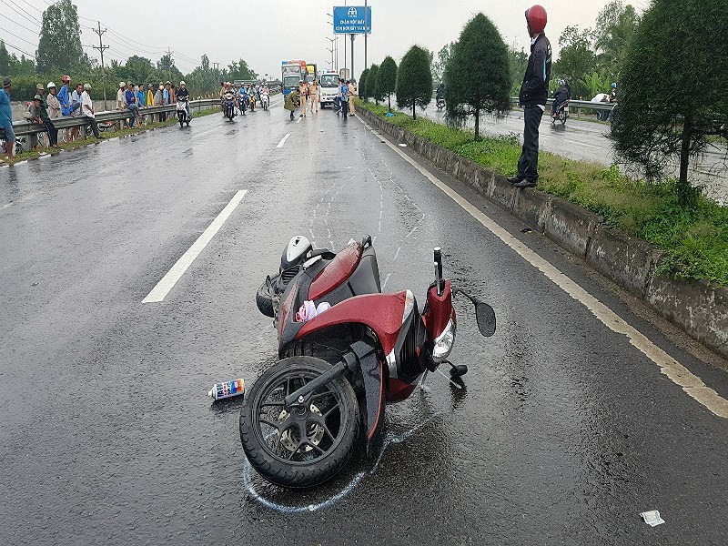 Cú đâm khiến chị Đ. văng ra khỏi xe rồi va mạnh vào gốc cây nằm ở giữa dải phân cách. Vụ tai nạn khiến chị Đ. tử vong tại chỗ, còn chiếc xe máy văng ra khoảng 20m.