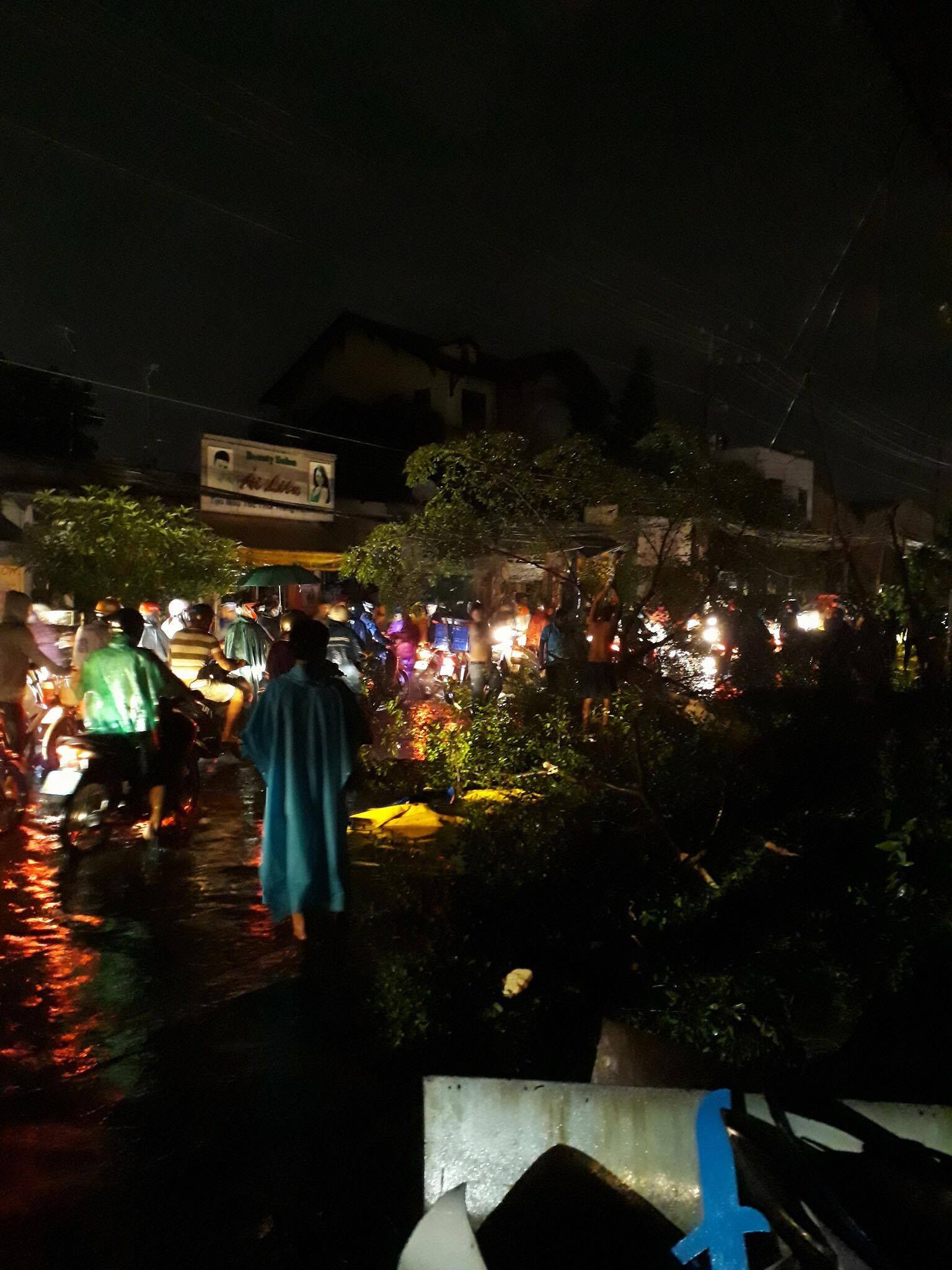 Mưa gió, cây đổ khiến việc di chuyển của người dân khó khăn. Anh chụp ại Bình Dương chiều tối 18/11 - (Ảnh: Facebook Hồng Trịnh).