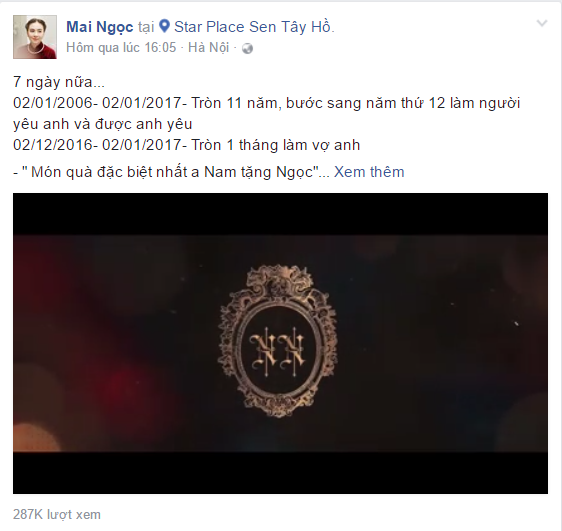 “7 ngày nữa… 02/01/2006- 02/01/2017- Tròn 11 năm, bước sang năm thứ 12 làm người yêu anh và được anh yêu… 02/12/2016- 02/01/2017- Tròn 1 tháng làm vợ anh…