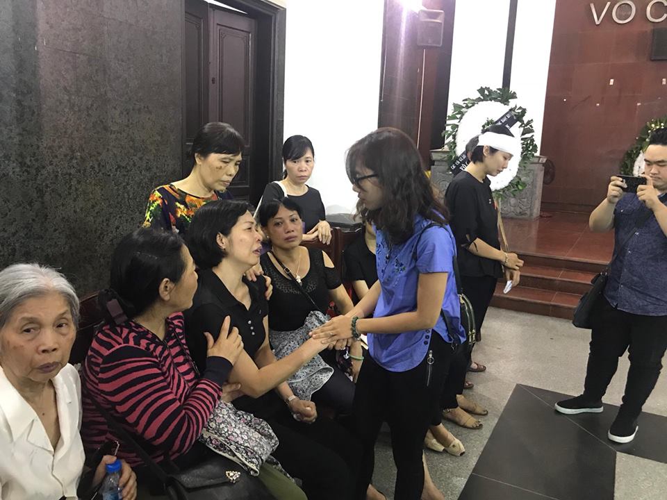 Chị Dương (mẹ bé Hải An) đến chia sẻ với người thân trong đám tang bé Vân Nhi.