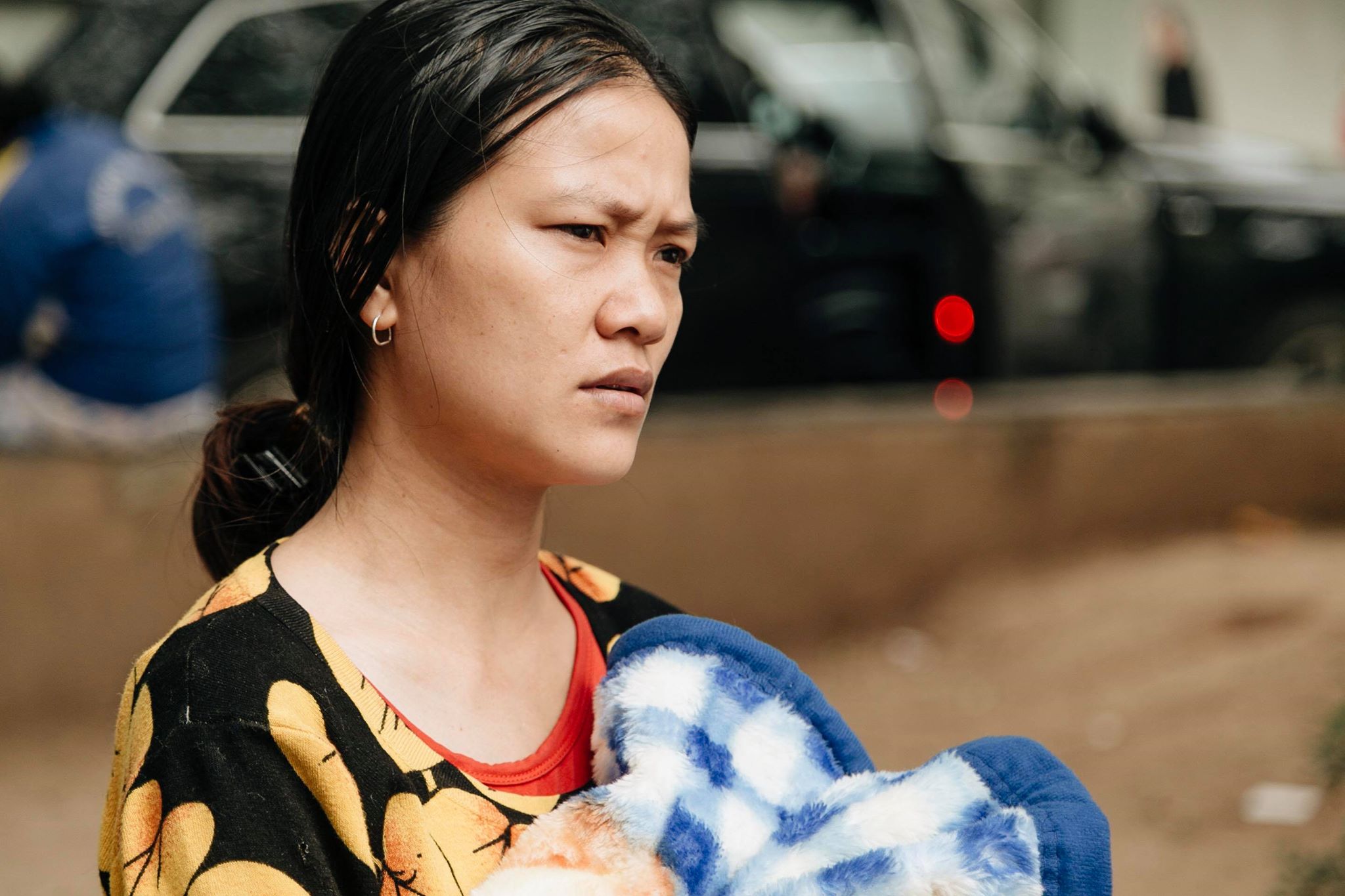 Chị bật khóc vì thương con.