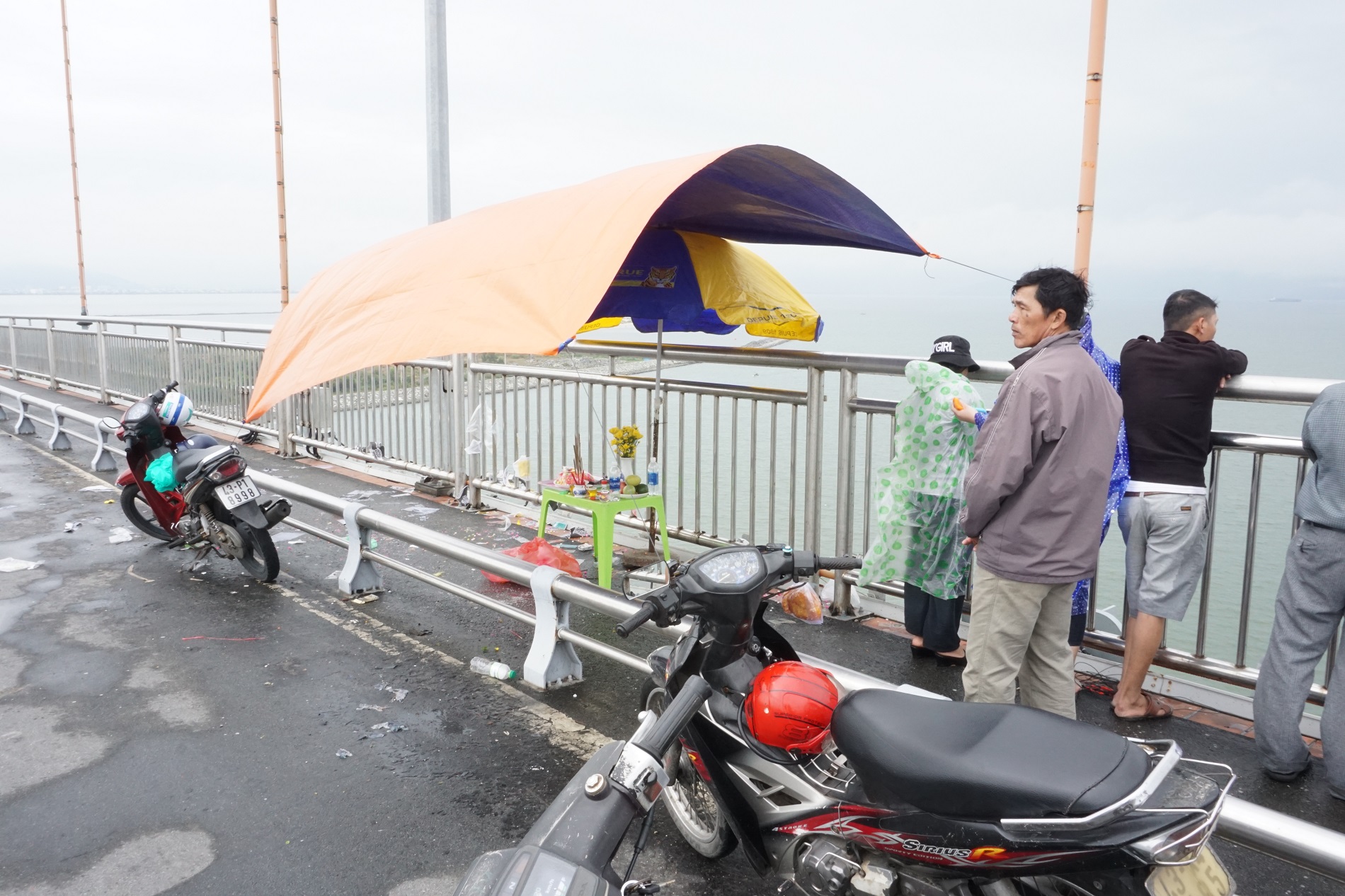 Người thân lập bàn thờ trên cầu Thuận Phước.