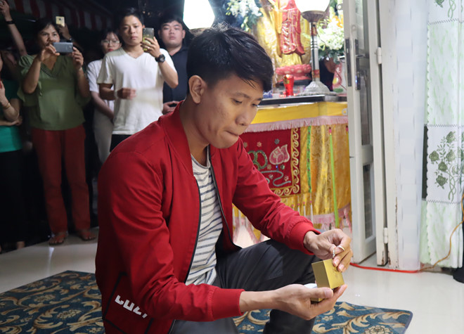 Tối 25/8, Ân có mặt tại sân bay Tân Sơn Nhất rồi nhanh chóng đi xe về nhà bạn gái ở Củ Chi. Đêm muộn, vùng quê ngoại thành yên tĩnh càng thêm tĩnh lặng bởi không khí u ám tĩnh mịch nơi hẻm nhà cô gái xấu số. Không mâm quả, không trầu cau, Ân nhận vội bó hoa cưới rồi tiến đến quan tài vợ.